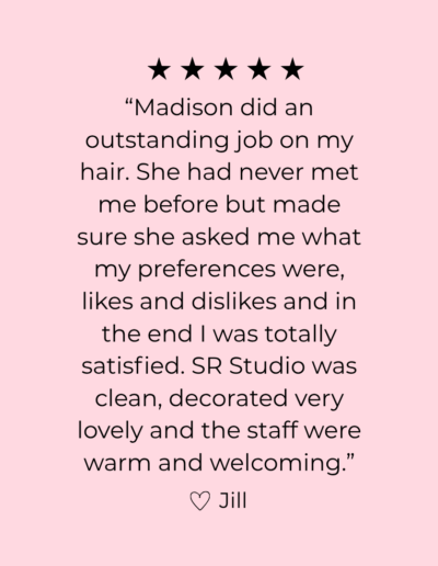 At SR Studio, we specialize in total transformations — inside and out. Our team of expert stylists and beauty professionals is dedicated to bringing your vision to life with precision, care, and a whole lot of heart. Located in the heart of Boonsboro, MD — by appointment only so every client gets our full attention.